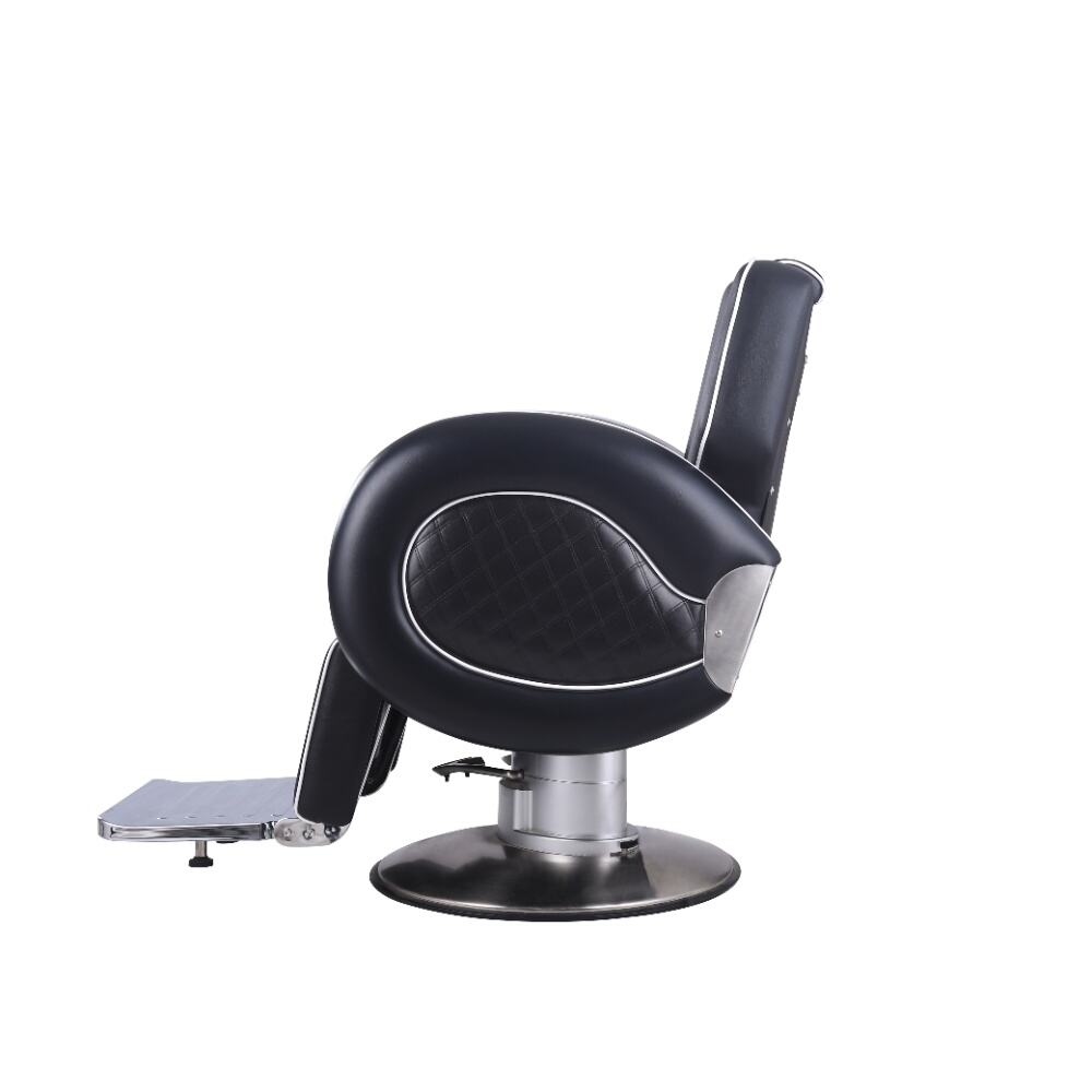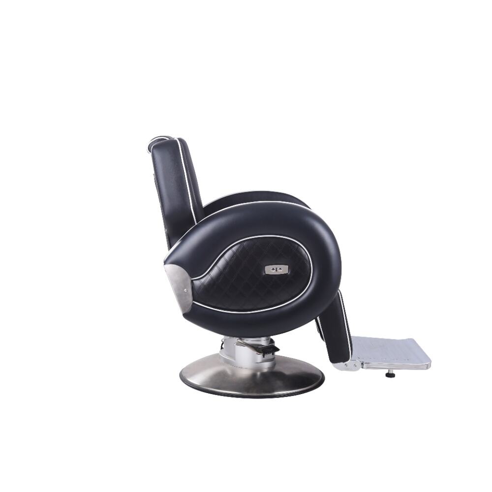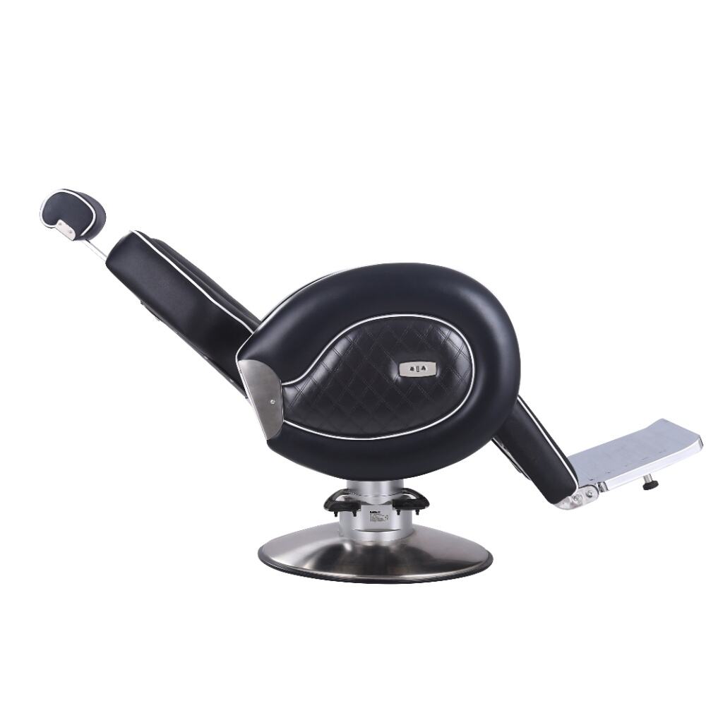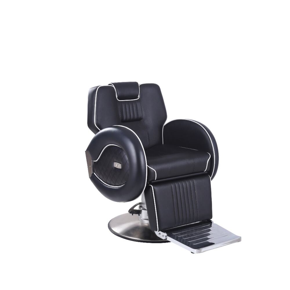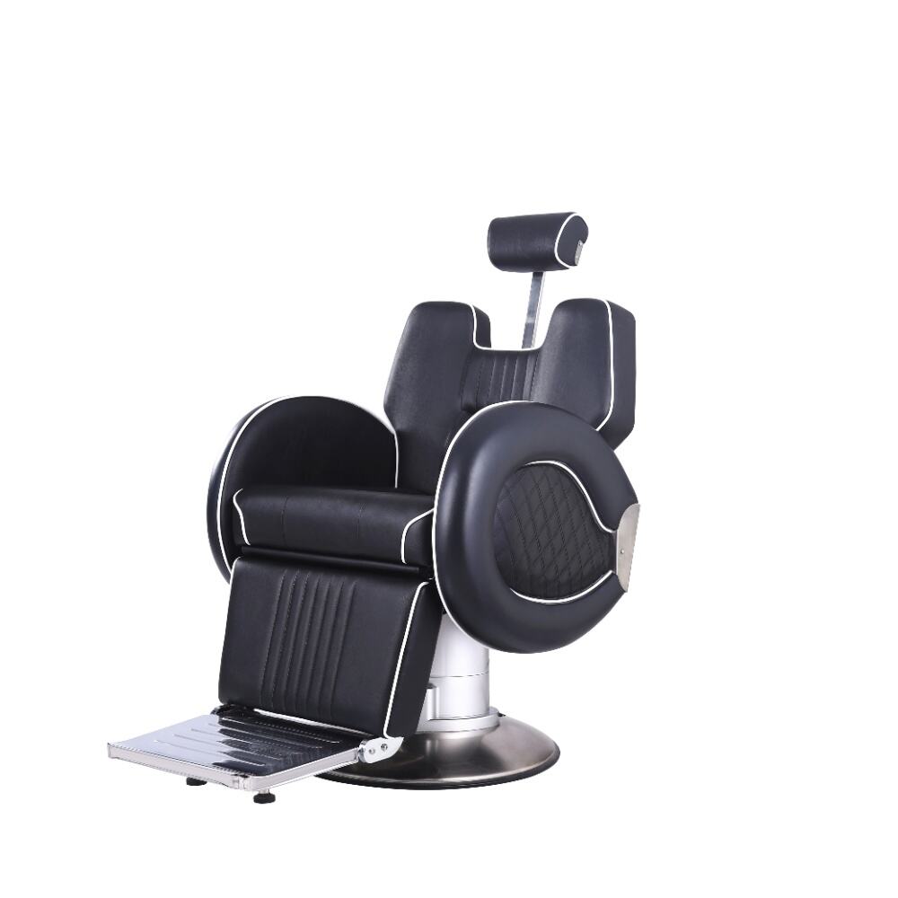 This barber chair is a stunning combination of sophistication and practicality. Crafted with sleek black leather and accentuated by crisp white piping, it exudes an air of modern elegance. The chair boasts a meticulously designed ergonomic structure, with a well - padded backrest, plush armrests, and a comfortable footrest, all ensuring clients enjoy a supremely relaxing experience while getting their hair done.It comes with a smoothly adjustable base, enabling effortless adjustments in height and recline angle.