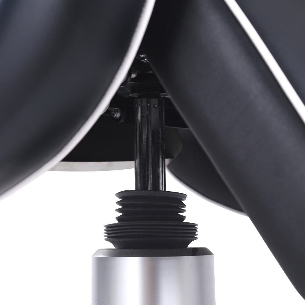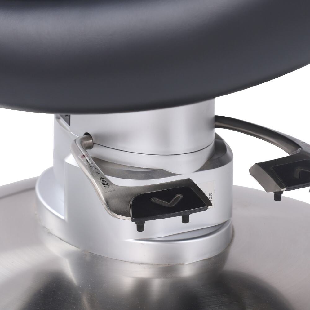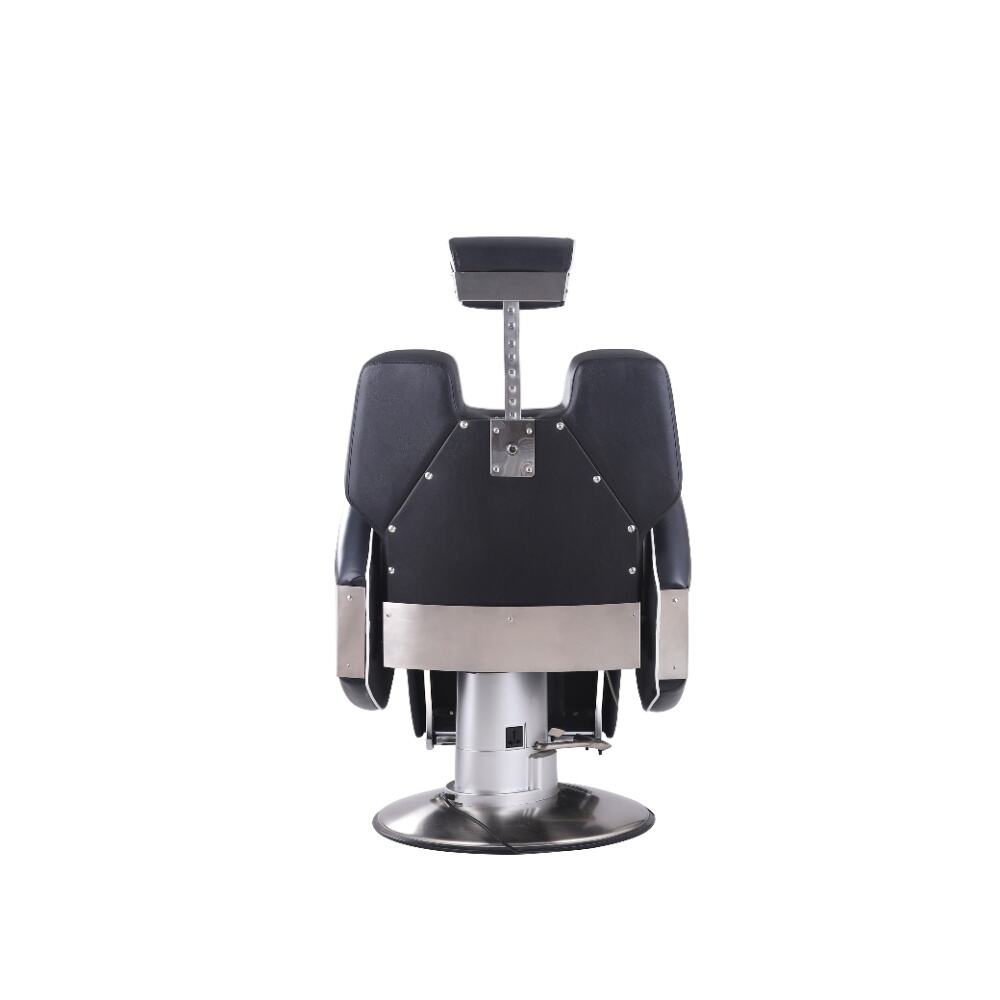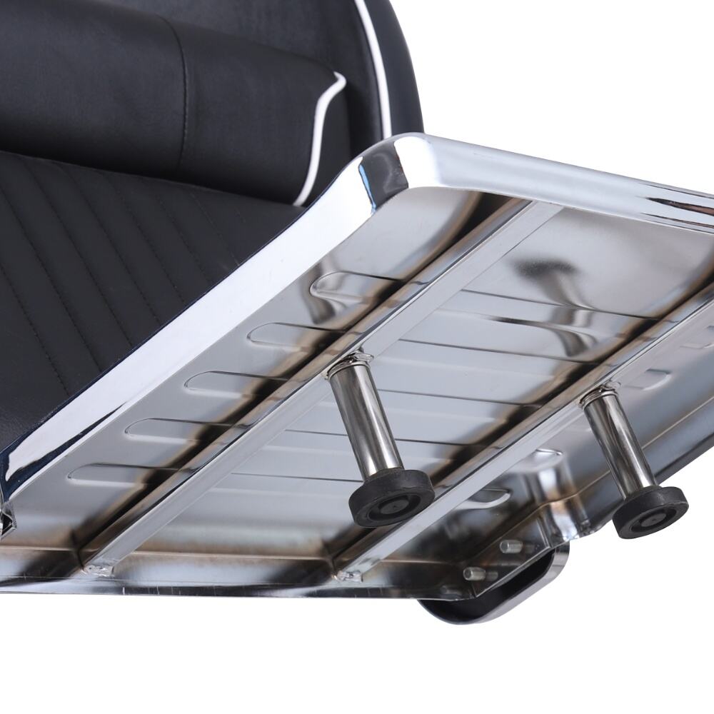 This barber chair is a stunning combination of sophistication and practicality. Crafted with sleek black leather and accentuated by crisp white piping, it exudes an air of modern elegance. The chair boasts a meticulously designed ergonomic structure, with a well - padded backrest, plush armrests, and a comfortable footrest, all ensuring clients enjoy a supremely relaxing experience while getting their hair done.It comes with a smoothly adjustable base, enabling effortless adjustments in height and recline angle.