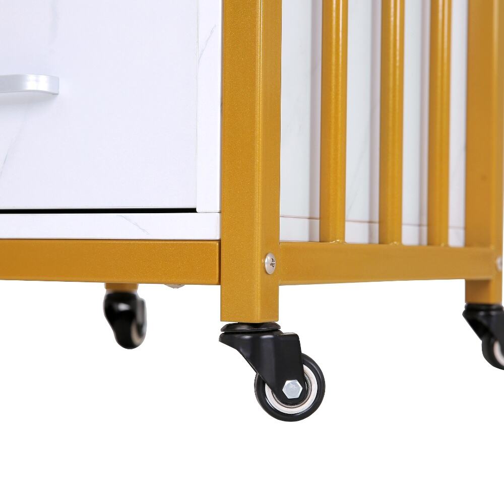 This elegant and versatile nail desk, a perfect fusion of modern design and practical functionality for both professional salons and personal nail care spaces.Featuring a sleek white marble-patterned top paired with a stylish gold metal frame, this desk exudes a sense of luxury and contemporary charm.