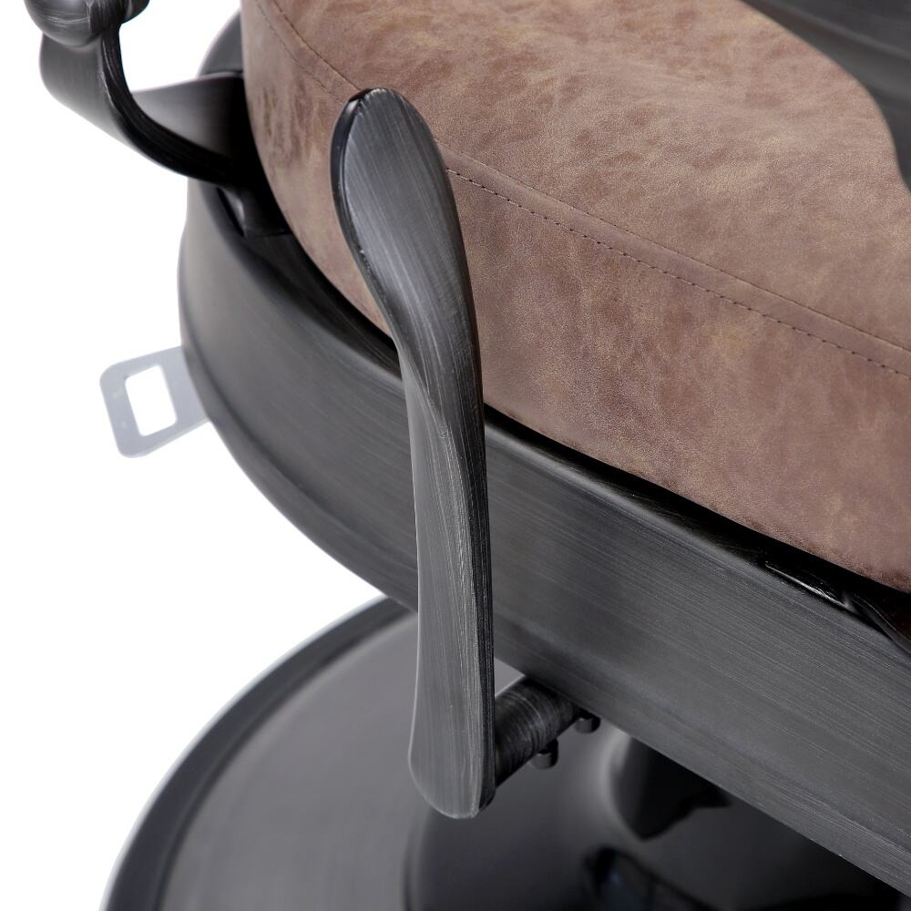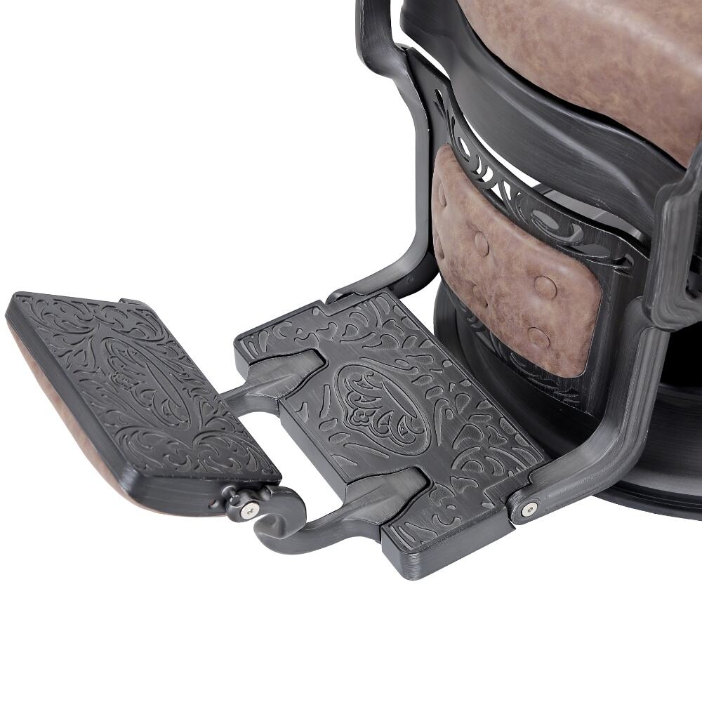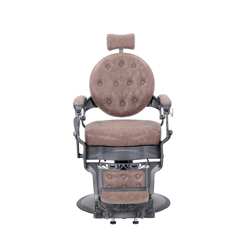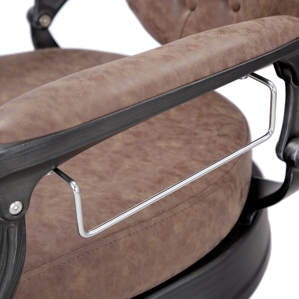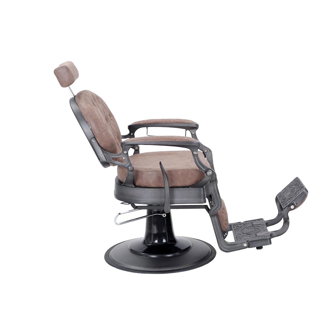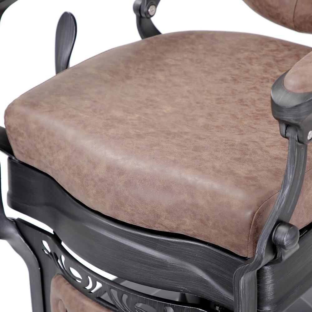 This barber chair is a magnificent blend of luxury and functionality.It showcases a gleaming gold - toned metal frame that exudes an air of grandeur. The seat and backrest are upholstered in exquisite dark green leather, with a tufted design that not only looks stylish but also ensures superior comfort.Equipped with adjustable parts such as the headrest and footrest, it can cater to the diverse needs of different clients, guaranteeing a comfortable experience during haircuts. Whether placed in a high - end barbershop or a chic salon, this chair is bound to elevate the grooming experience and stand out as a remarkable piece.