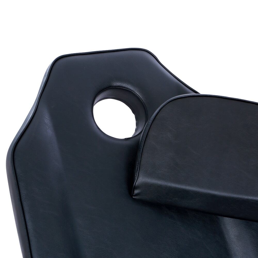 This exceptional massage chair-bed, a perfect fusion of comfort, versatility, and sleek design tailored to enhance every therapeutic experience.Upholstered in premium black leather, it offers a plush and supportive surface that ensures clients’ utmost comfort during massages, pedicures, or other wellness treatments.