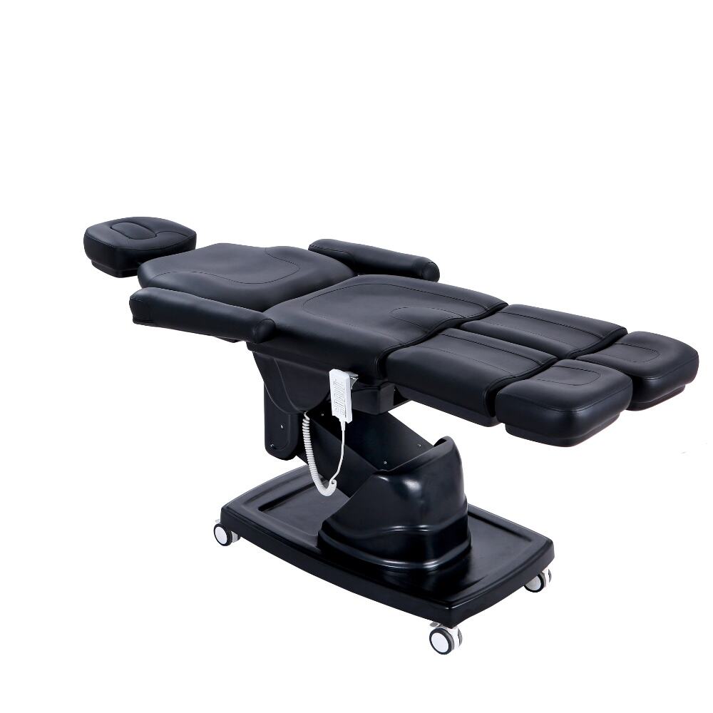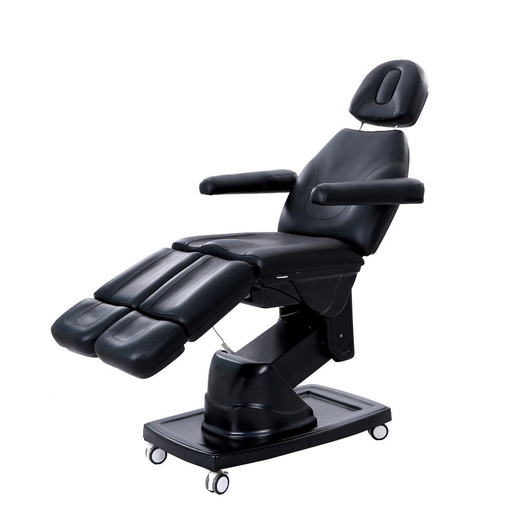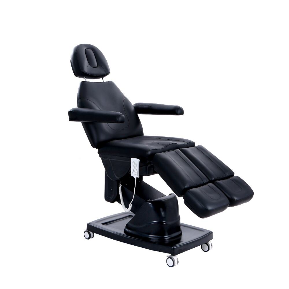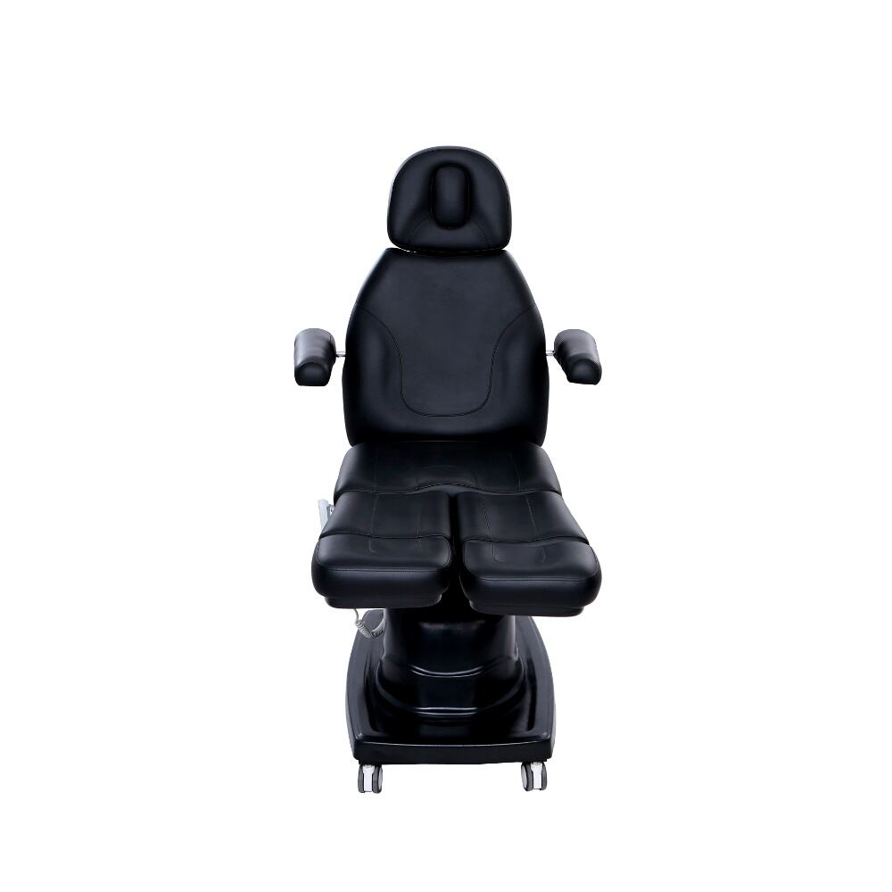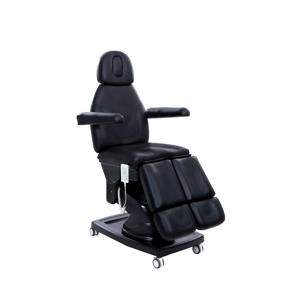 This state-of-the-art massage chair-bed, a pinnacle of innovation, comfort, and versatility designed to transform any wellness or beauty setting.Upholstered in premium black leather with ergonomic contouring, it provides exceptional support and comfort for clients during massages, aesthetic treatments, or relaxation sessions. The chair features a fully electric adjustable system—with intuitive controls, the headrest, backrest, and segmented footrest can be precisely positioned to countless angles, ensuring a customized experience that caters to individual needs and various therapeutic modalities.Equipped with smooth-rolling wheels, it offers effortless mobility, allowing for easy rearrangement within your spa, salon, or clinic. Its robust yet sleek black frame not only guarantees durability but also adds a touch of modern luxury to your space. The integrated electric mechanism enables seamless height and angle adjustments, empowering therapists to work with utmost efficiency while clients enjoy unparalleled relaxation.Whether you’re delivering advanced massage therapies, cosmetic procedures, or simply providing a tranquil retreat, this chair-bed sets a new standard for comfort and functionality. It’s an investment that blends cutting-edge technology with sophisticated design, elevating the client experience and enhancing the professionalism of your wellness establishment.