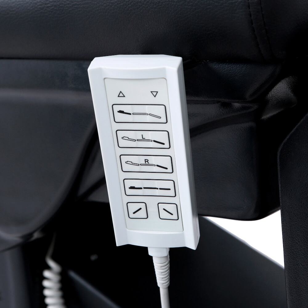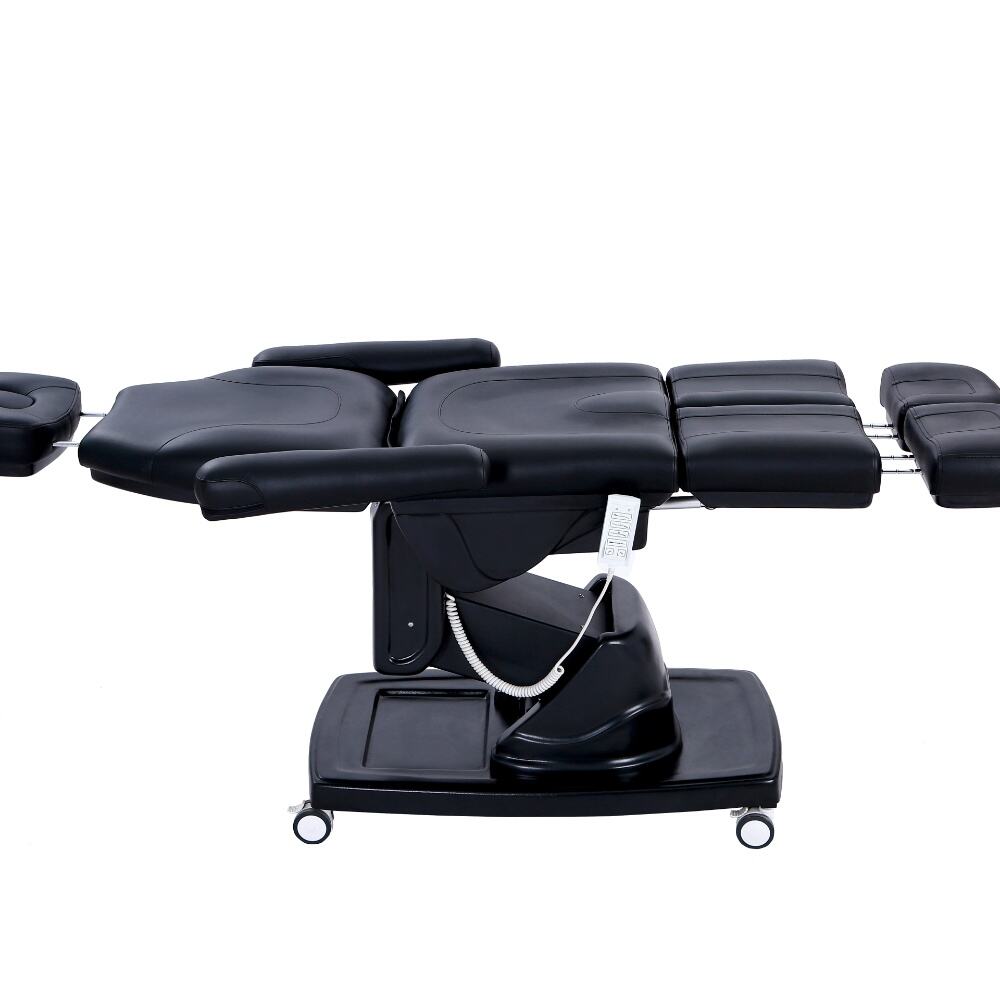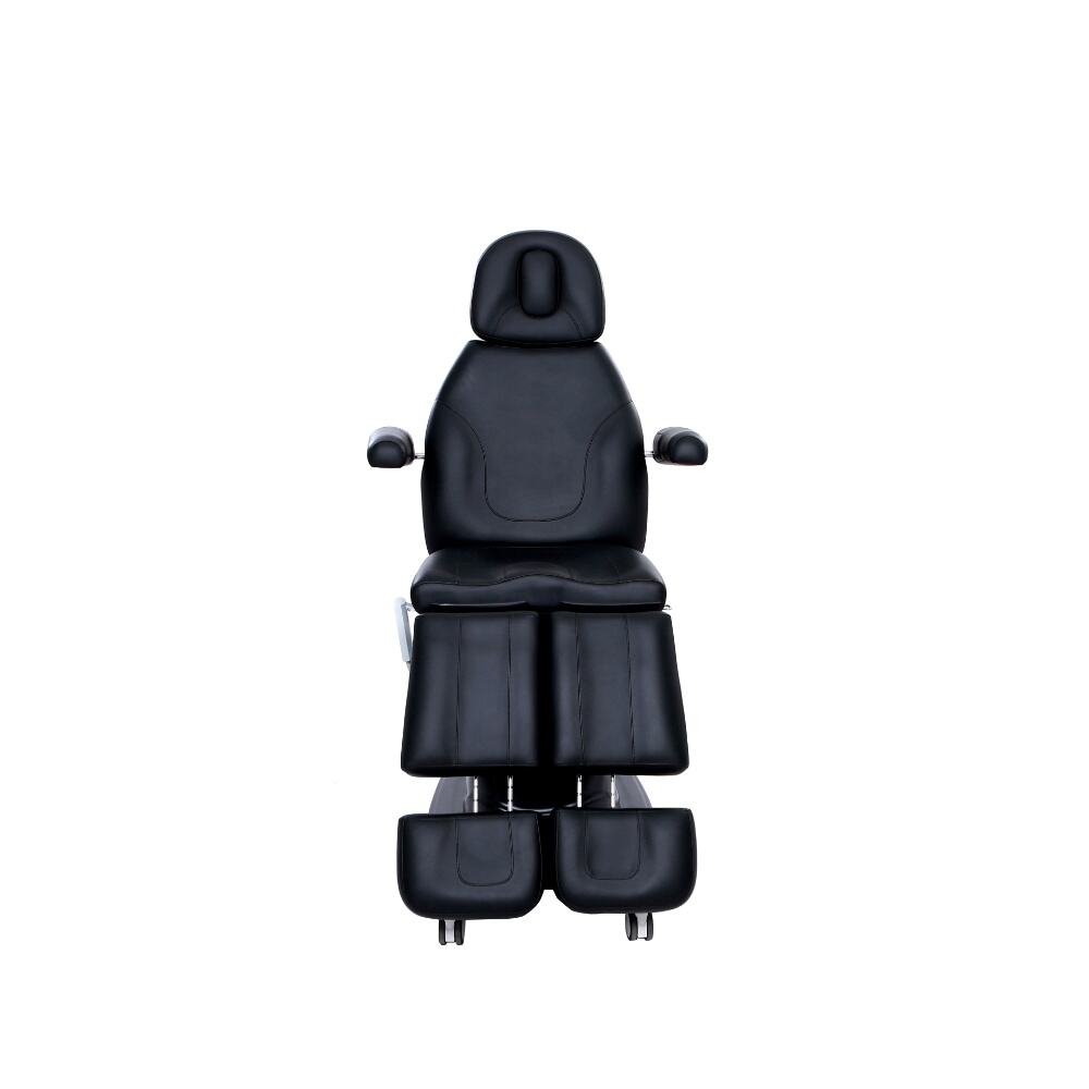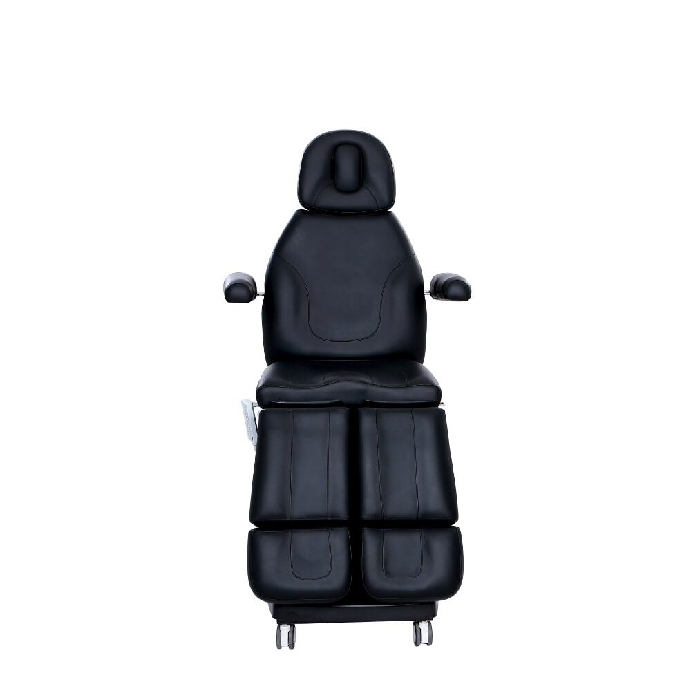 This state-of-the-art massage chair-bed, a pinnacle of innovation, comfort, and versatility designed to transform any wellness or beauty setting.Upholstered in premium black leather with ergonomic contouring, it provides exceptional support and comfort for clients during massages, aesthetic treatments, or relaxation sessions. The chair features a fully electric adjustable system—with intuitive controls, the headrest, backrest, and segmented footrest can be precisely positioned to countless angles, ensuring a customized experience that caters to individual needs and various therapeutic modalities.Equipped with smooth-rolling wheels, it offers effortless mobility, allowing for easy rearrangement within your spa, salon, or clinic. Its robust yet sleek black frame not only guarantees durability but also adds a touch of modern luxury to your space. The integrated electric mechanism enables seamless height and angle adjustments, empowering therapists to work with utmost efficiency while clients enjoy unparalleled relaxation.Whether you’re delivering advanced massage therapies, cosmetic procedures, or simply providing a tranquil retreat, this chair-bed sets a new standard for comfort and functionality. It’s an investment that blends cutting-edge technology with sophisticated design, elevating the client experience and enhancing the professionalism of your wellness establishment.
