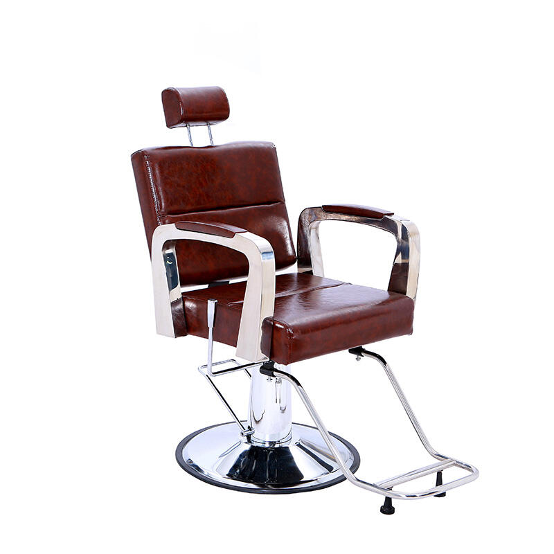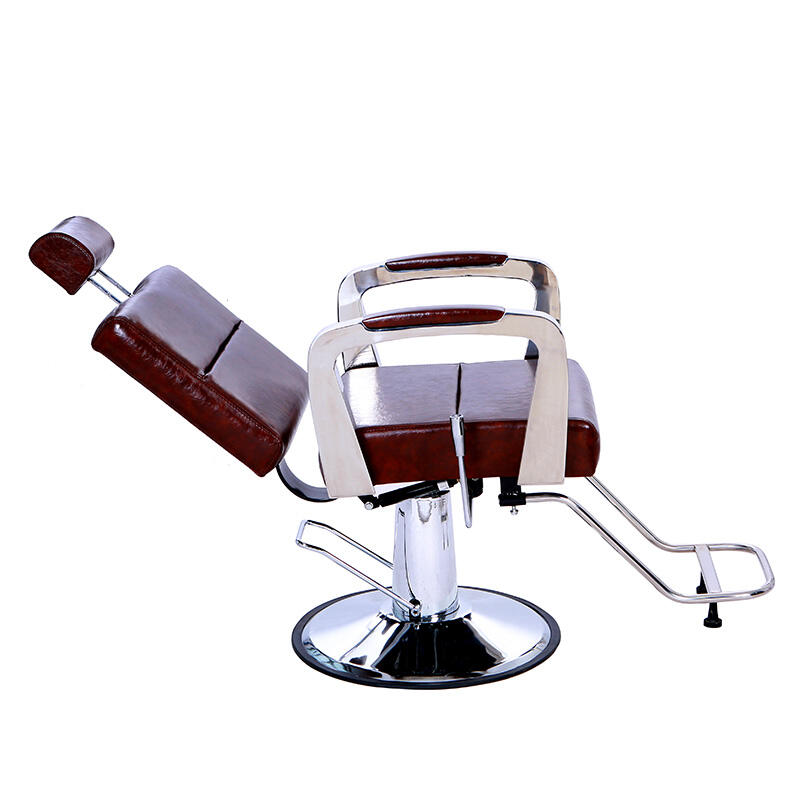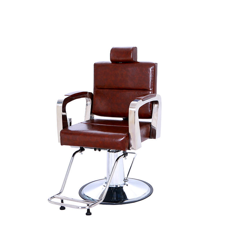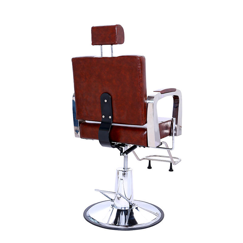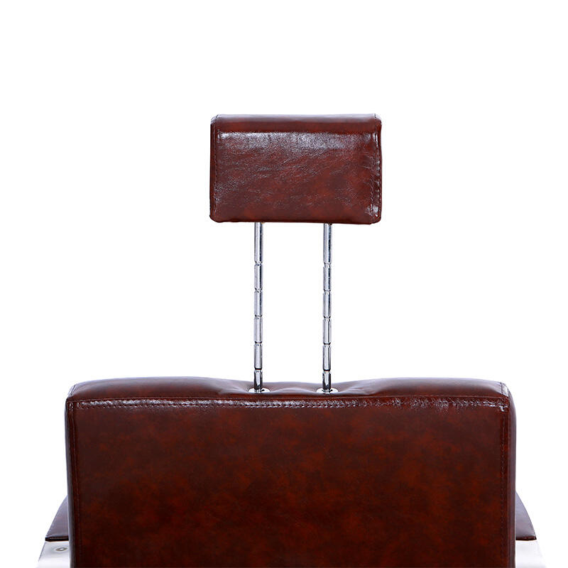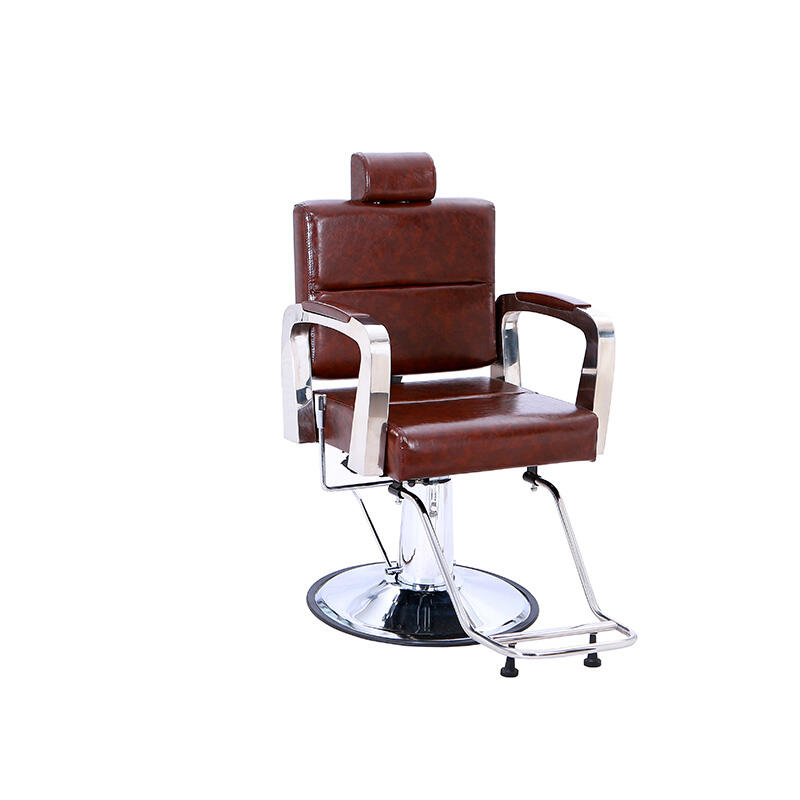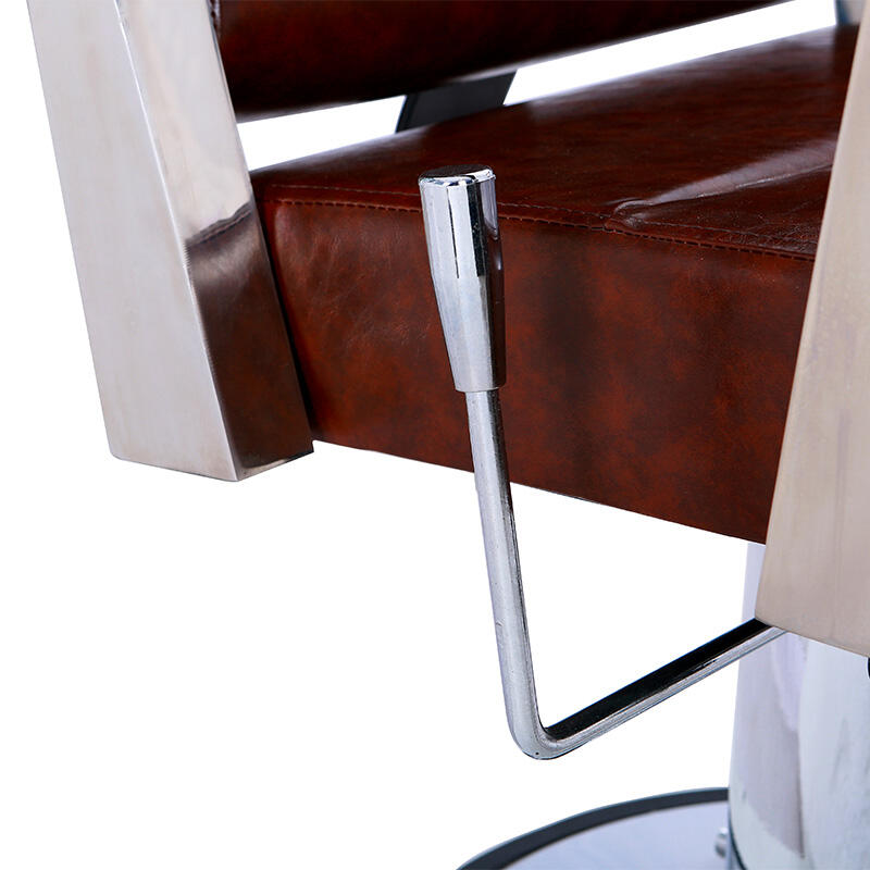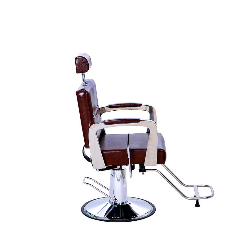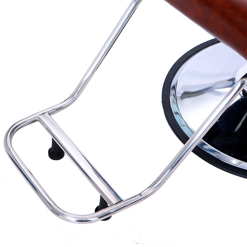 This barber chair, a remarkable combination of vintage charm, comfort, and practicality, ideal for salons and barbershops that value both aesthetics and functionality.Crafted with premium brown faux leather, it exudes a retro vibe while ensuring durability and easy maintenance. The adjustable headrest provides customized support, enhancing client comfort during every service.Featuring sleek chrome-plated armrests and a robust hydraulic base, this chair allows for smooth height adjustment to accommodate different barbers and clients. The metal footrest offers stability and convenience, making it a thoughtful addition for prolonged grooming sessions.Whether you want to infuse your space with a touch of timeless style or deliver a comfortable experience to your clients, this barber chair is an excellent choice that seamlessly merges classic design with modern utility.