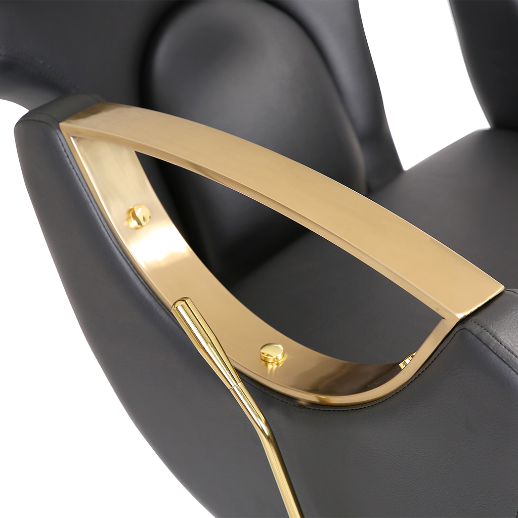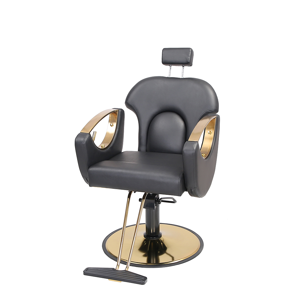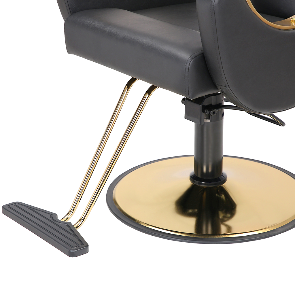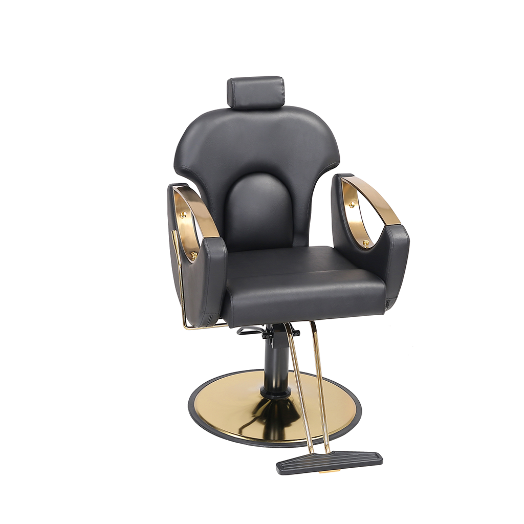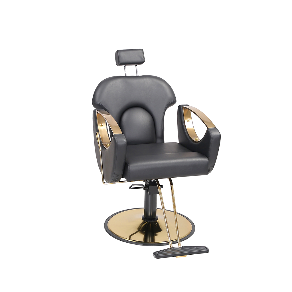 This barber chair, with classic black as the main color, is matched with exquisite gold trim, which is calm and gorgeous. The leather seat is soft and skin-friendly, fits the curve of the human body, and creates a comfortable experience for customers. Adjustable headrest, flexible lifting and lowering functions, adapting to a variety of hairdressing needs, and helping hairdressers to operate, it is a high-quality choice for hairdressing salons to improve their style and practicality.