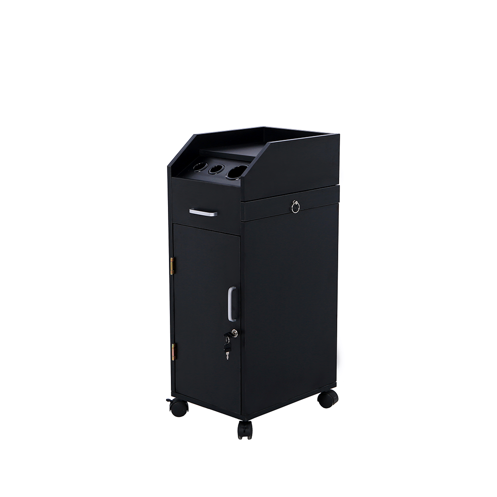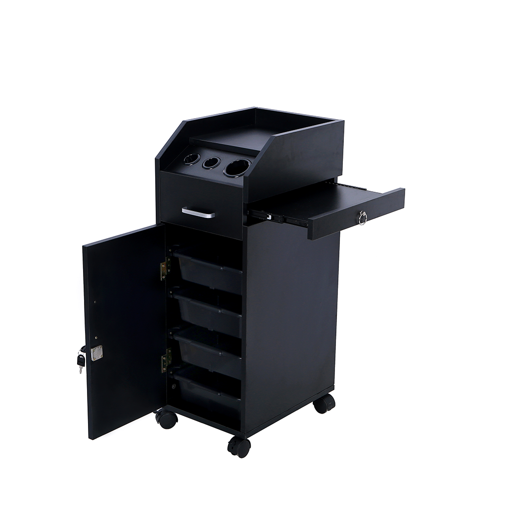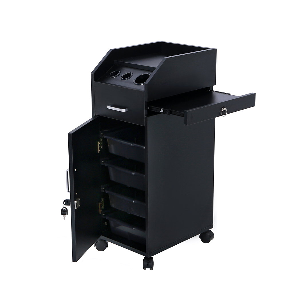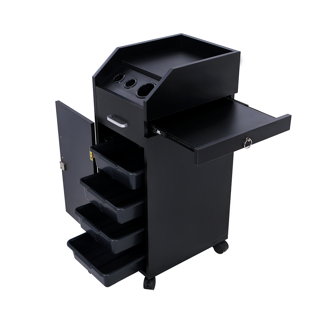 This hairdressing cart is simple and elegant, suitable for all kinds of decoration styles. There is a storage area at the top, which is convenient for placing common tools; the side drawer is locked, and valuables can be properly stored; multi-layer pull-out storage compartment, the partition is regular, and scissors, combs, dyeing and ironing supplies are classified and stored, which is super convenient to take. The bottom roller is smooth, flexible and not stuck, which is a practical helper for hair salons.