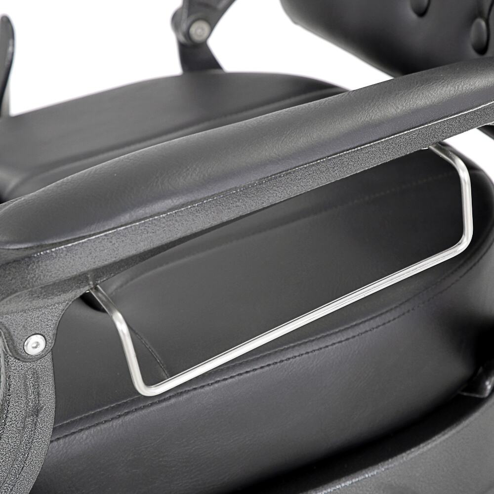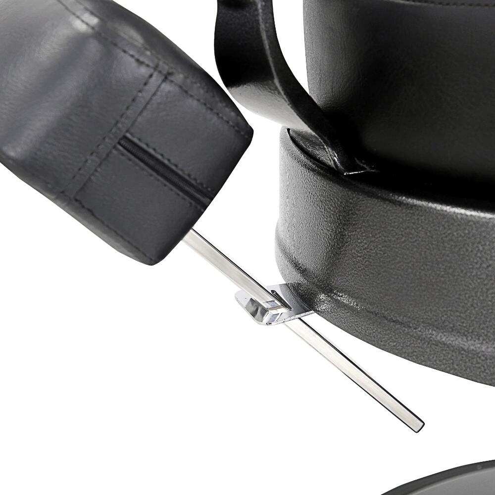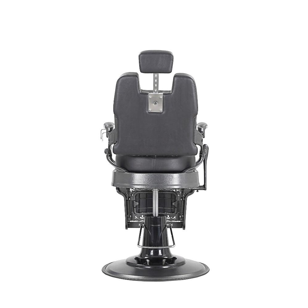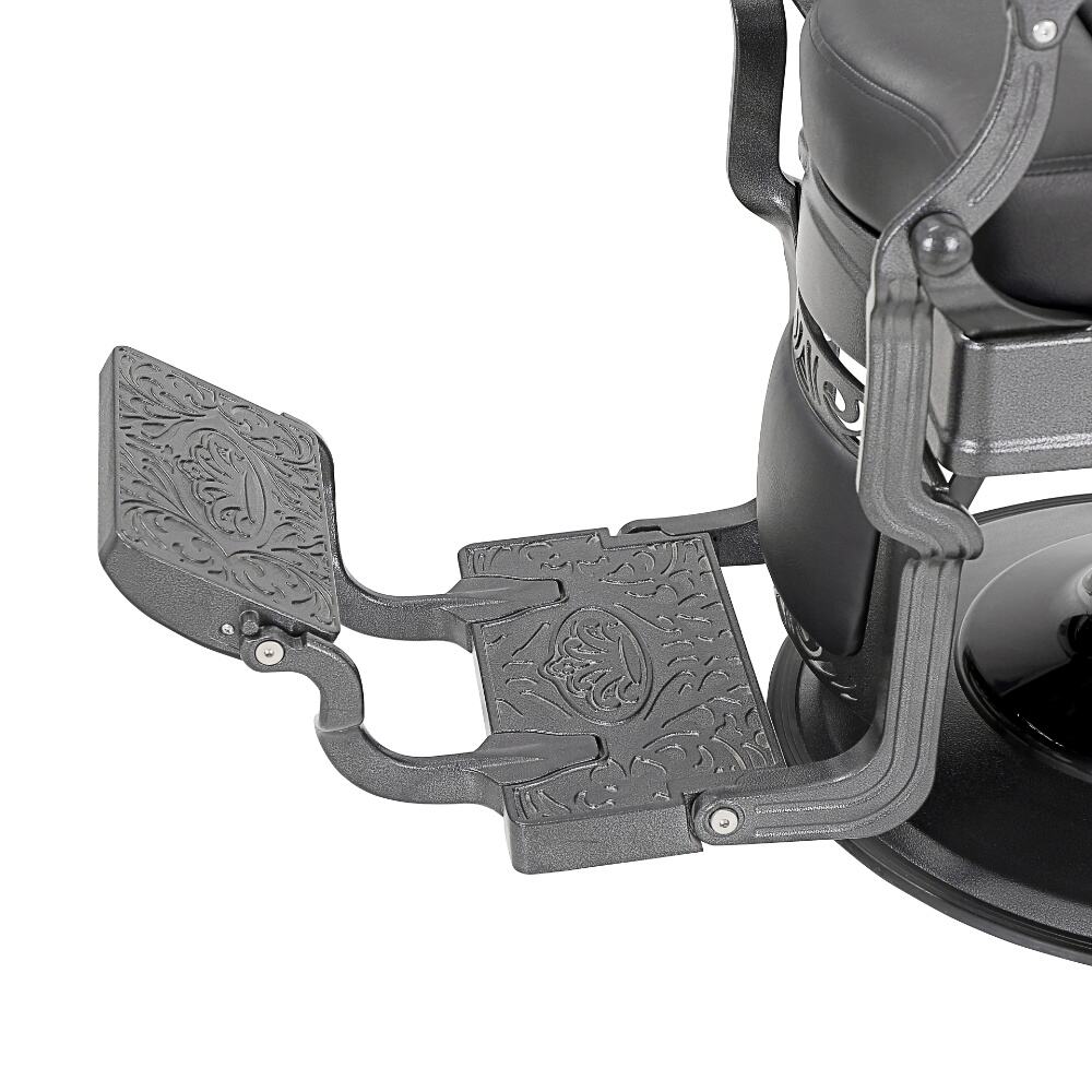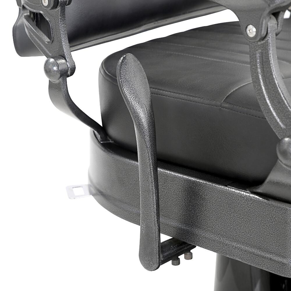 This barber chair is a perfect embodiment of understated elegance and practicality. Upholstered in smooth black leather with a classic tufted design on the backrest, it offers a timeless and sophisticated look.The chair comes with adjustable features, including a reclining back and an adjustable headrest, ensuring clients can relax in utmost comfort during haircuts, shaves, or other grooming services. Its sturdy metal frame and comfortable armrests not only guarantee durability but also provide a secure and pleasant seating experience.Whether in a traditional barbershop or a modern salon, this chair seamlessly combines style and functionality, enhancing the overall atmosphere while delivering a comfortable service for every client.