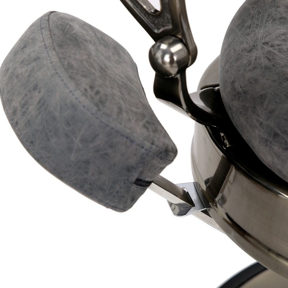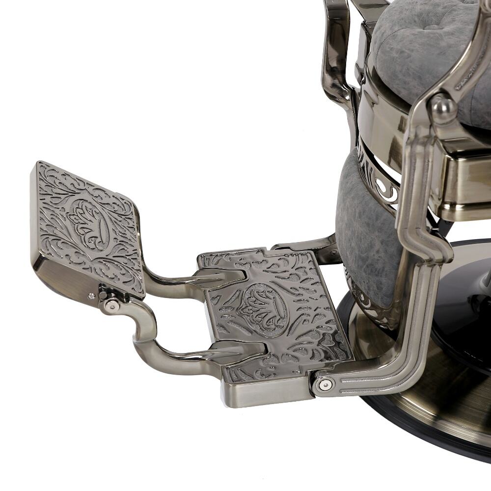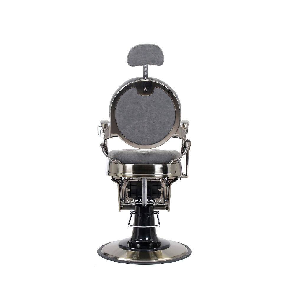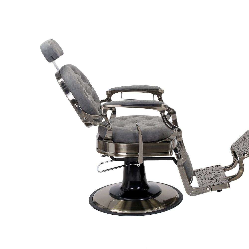 This barber chair is a stunning blend of elegance and comfort. The gray upholstery, featuring a tufted design, not only looks refined but also offers a plush and cozy seating experience.The sleek, metallic frame adds a touch of modern sophistication, complementing the gray fabric perfectly. It comes with adjustable components, enabling easy customization to suit different customers' height and angle preferences.Whether for a quick haircut or a more leisurely grooming session, this chair ensures that clients can relax in style. It's an excellent addition to any barbershop, elevating both the aesthetic and the level of comfort provided.