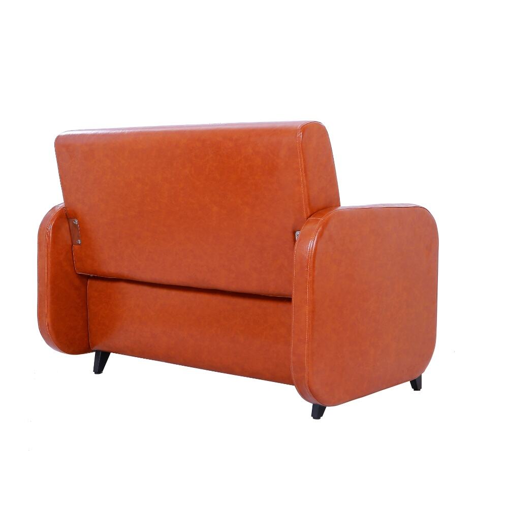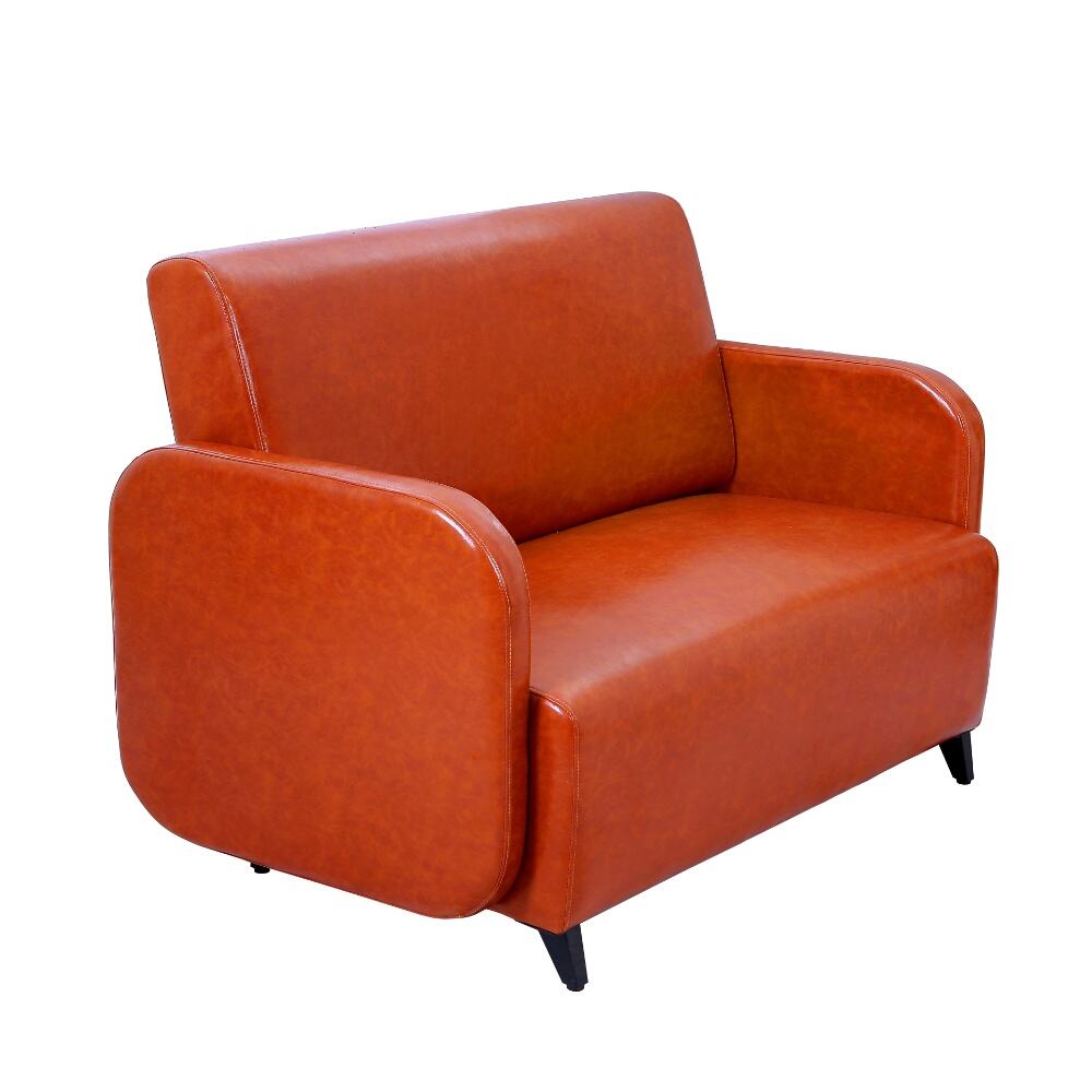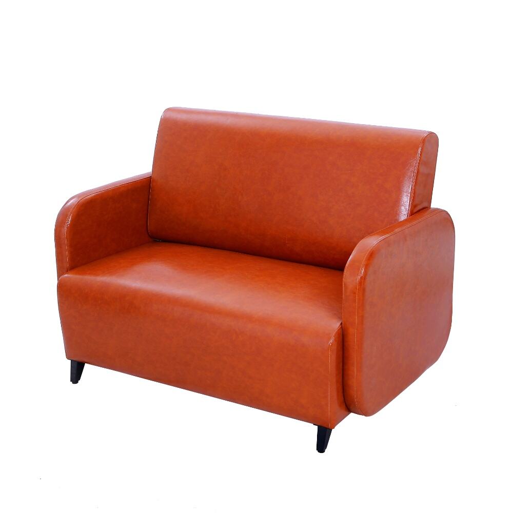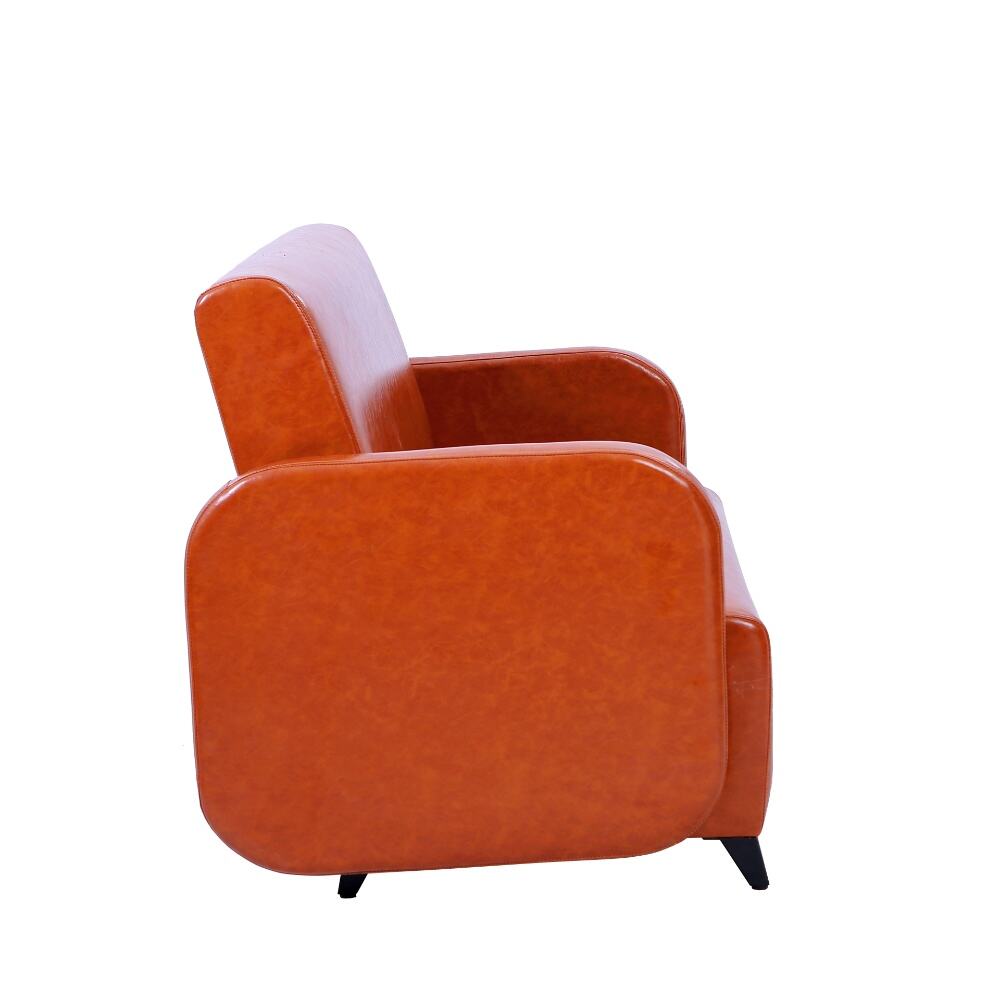This stylish salon waiting chair, a perfect blend of comfort and modern design. Upholstered in premium orange faux leather, it boasts a sleek and contemporary look that can elevate the aesthetic of any salon space.